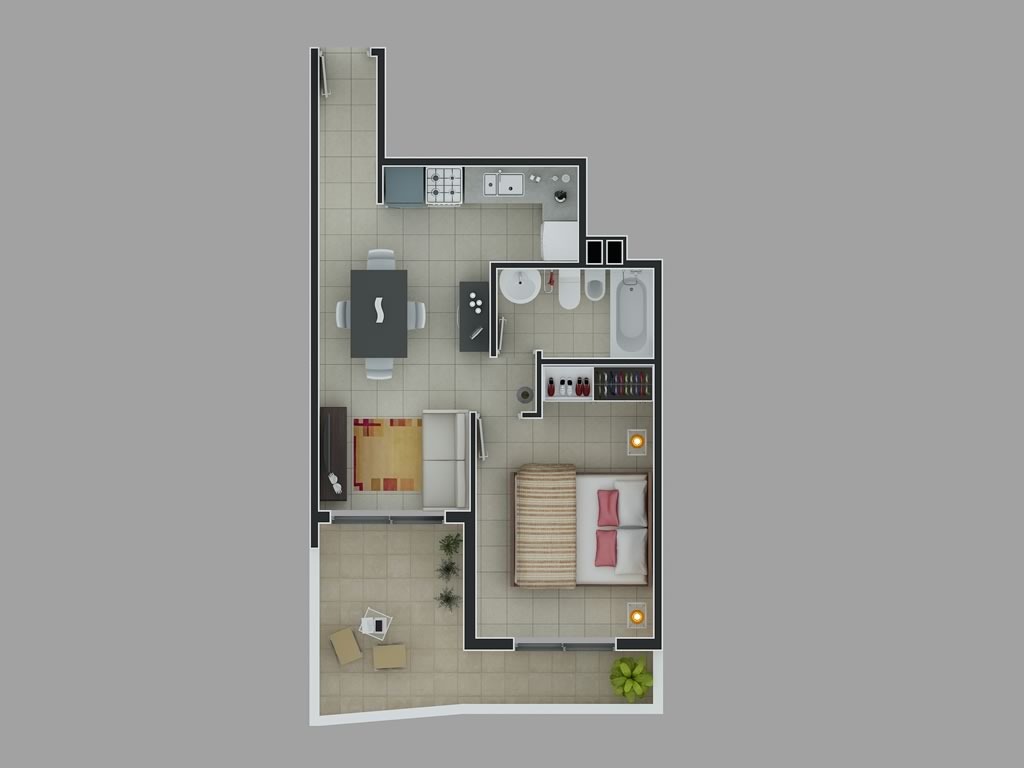 - Cocinas equipadas con mueble bajo mesada con cajoneras y mesada de granito con alacena.