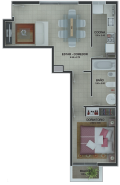 - Cocinas equipadas con mueble bajo mesada con cajoneras y mesada de granito con alacena.